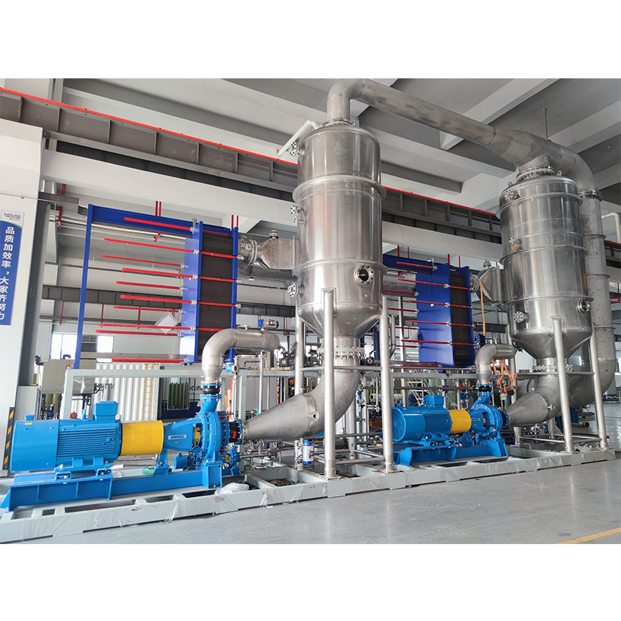 Proceso de tratamiento: Proceso de tratamiento: Pretratamiento de ablandamiento + MVR a baja temperatura + Intercambio iónico/Membrana en espiral + Solidificación y vertido de los residuos restantes + Sistema de desodorización