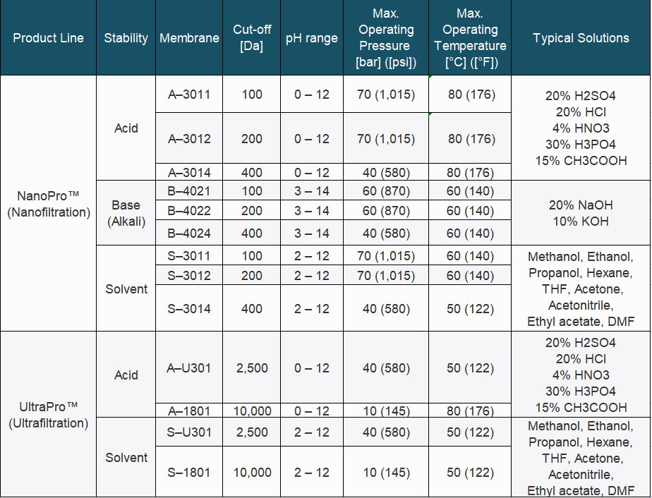 AMS Membranes series offers an extensive line of innovative acid-stable, alkali-stable and solvent-stable nanofiltration and ultrafiltration membranes with elements for use in the respective media.